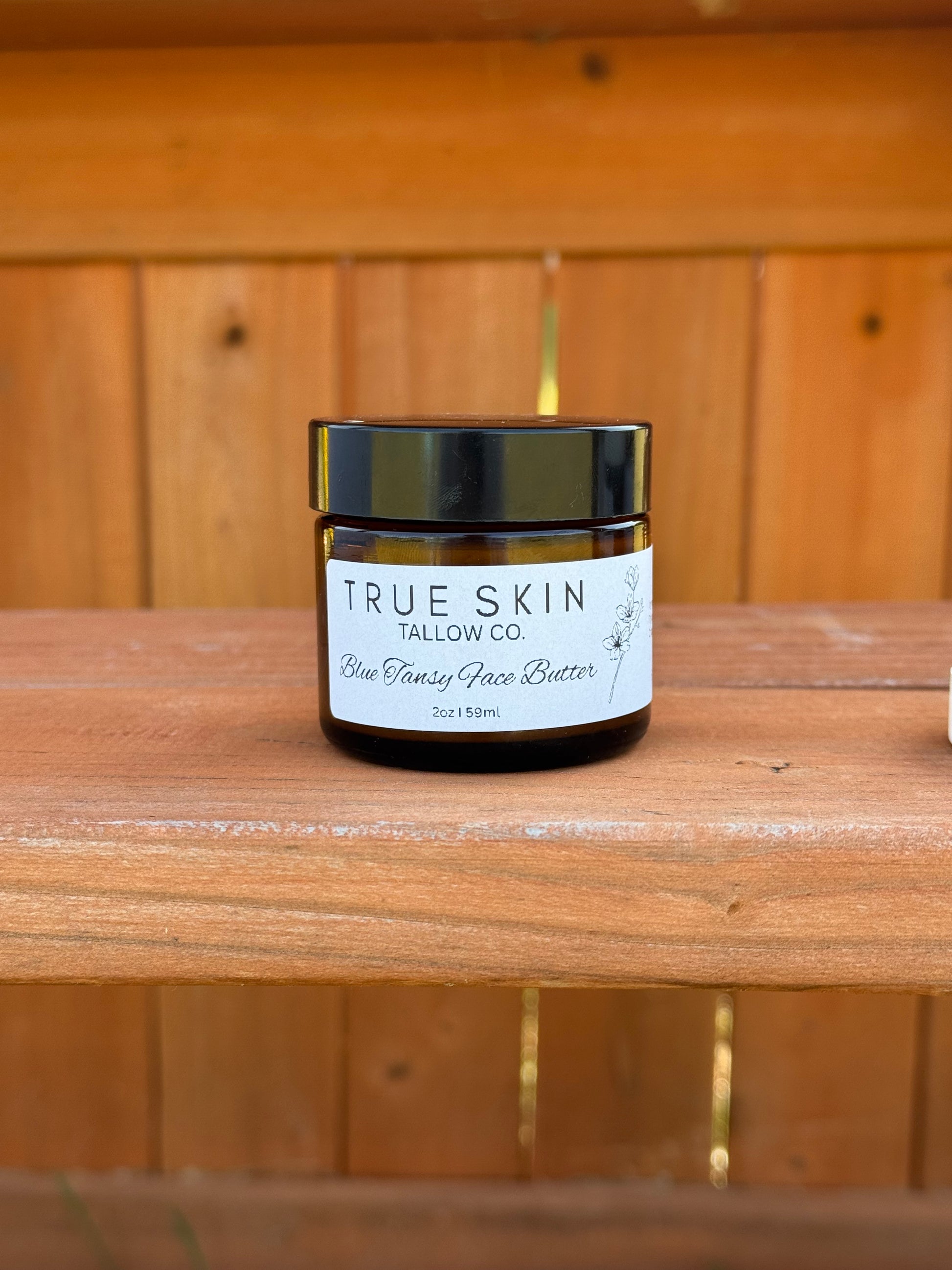 Our Whipped Blue Tansy Face Butter is made using only 4 ingredients. Grass Fed, Grass Finished Tallow, Organic Jojoba Oil, AEA emu oil and Organic Essential Oils of Blue Tansy and Frankincense. The face butter is wonderful for acne prone skin. It can assist with skin texture, redness, eczema, psoriasis and inflammation. Consistent use will leave your face glowy and beautiful!